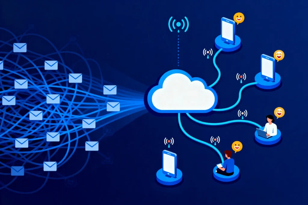 Multiple legacy systems sent fragmented and inconsistent notifications across SMS, email, mail, and push channels.